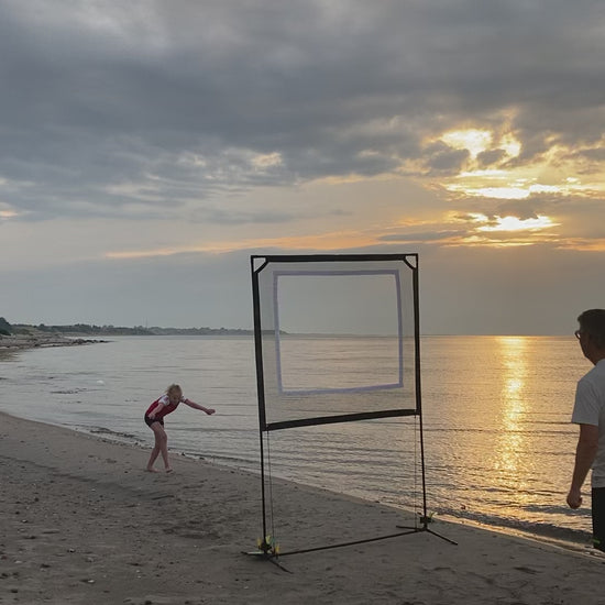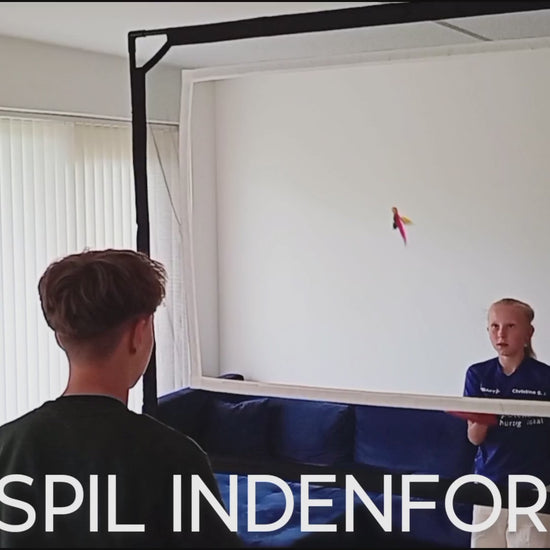 Spillesættet kan samles utrolig nemt på få minutter, og der medfølger dansk samlevejledning med billeder, så du nemt og hurtigt kan begynde at spille. Husk at sikre det med de medfølgende pløkker i blæsevejr.